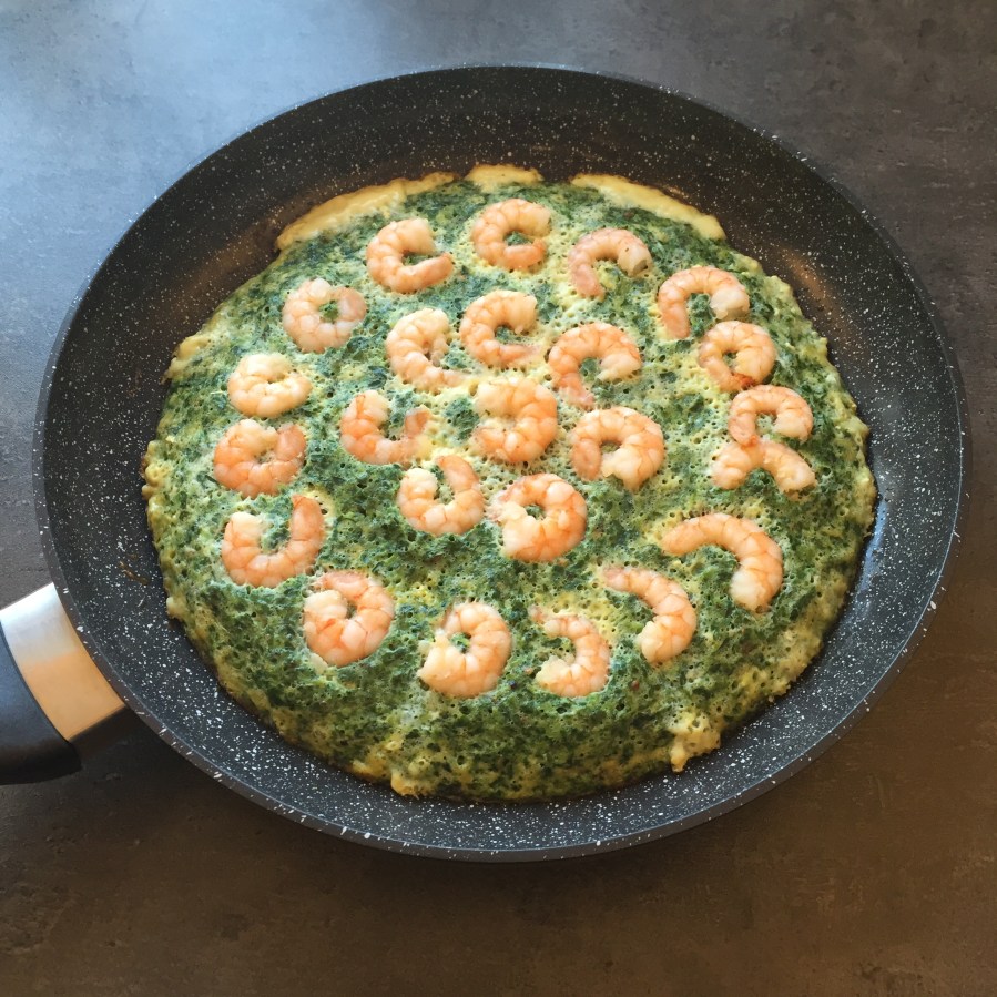 Für uns ist ein Rührei oder Omlette nach wie vor ein perfekter Start in den Tag. Mit verschiedenem Gemüse ist dabei immer wieder für Abwechslung gesorgt. Besonders raffiniert ist bei diesem Rezept die Verwendung von gehacktem Tiefkühlspinat, da man unter das Ei mischt, wodurch sich das Rührei/Omlette komplett grün färbt. Die Garnelen sind als magere Eiweißquelle schließlich die perfekte Ergänzung dieses tolle Gericht.