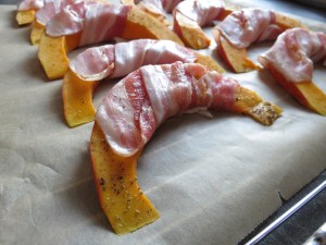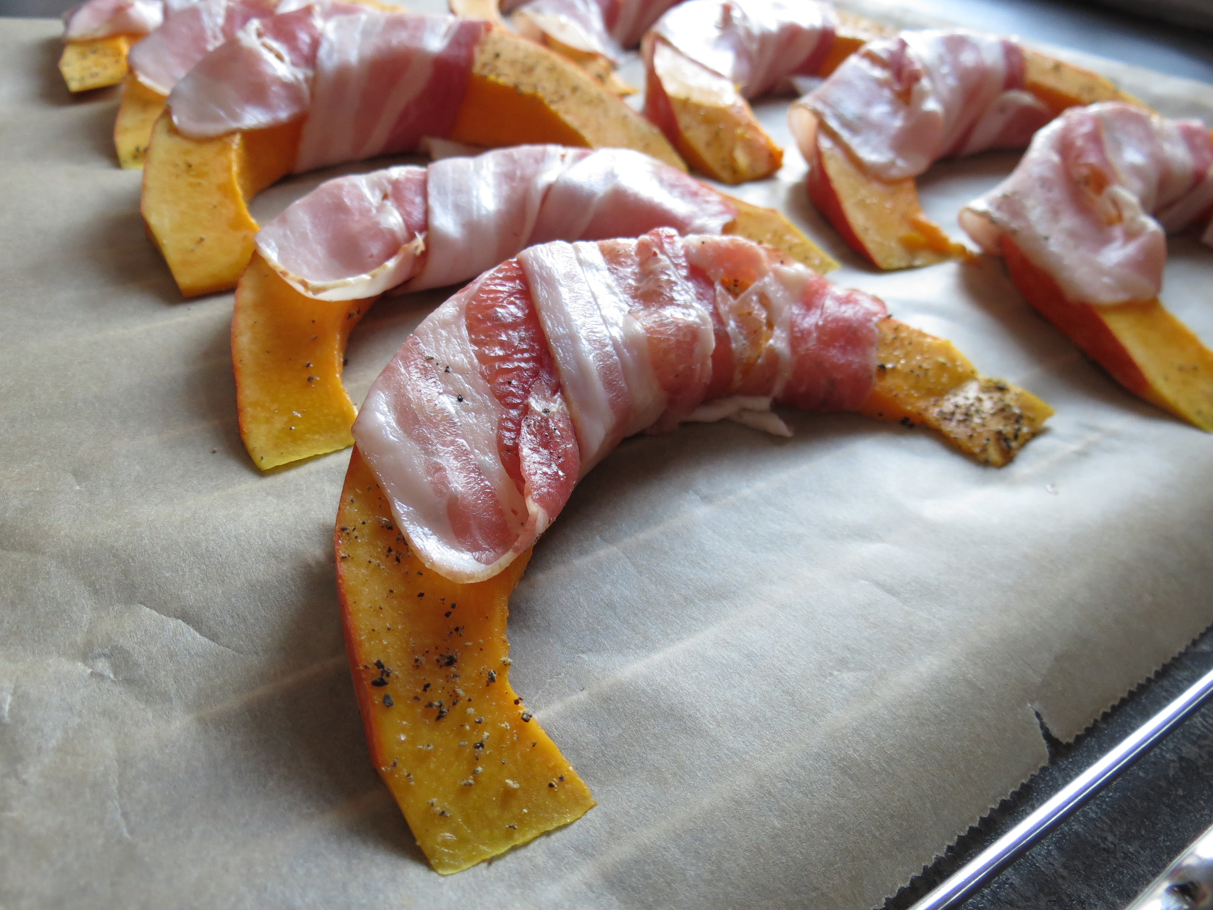 Bacon-Kürbisspalten roh Nahaufnahme am 23. September 201624. September 2016 von Neurotoxicum Bacon-Kürbisspalten vor dem Backen Nahaufnahme