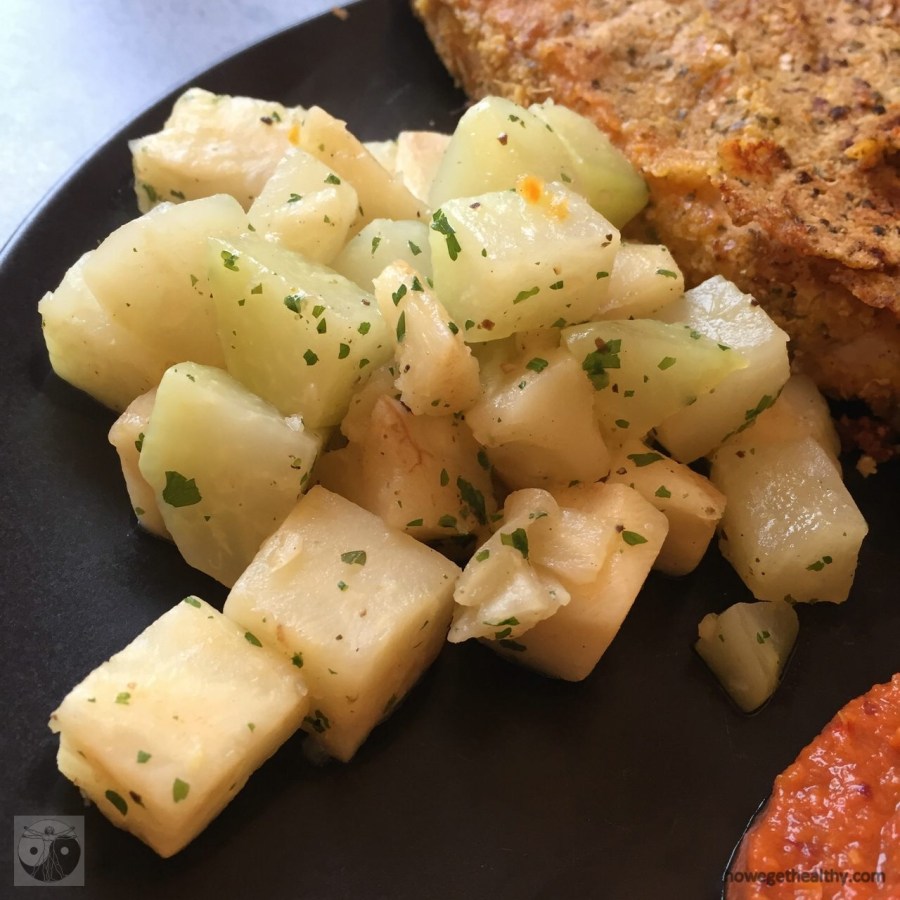 Vor kurzem haben wir Euch unser Kohlrabi-Selleriegemüse vorgestellt. Diese Beilage passt z.B. hervorragend zu panierten Schnitzeln mit Barbecue-Soße.