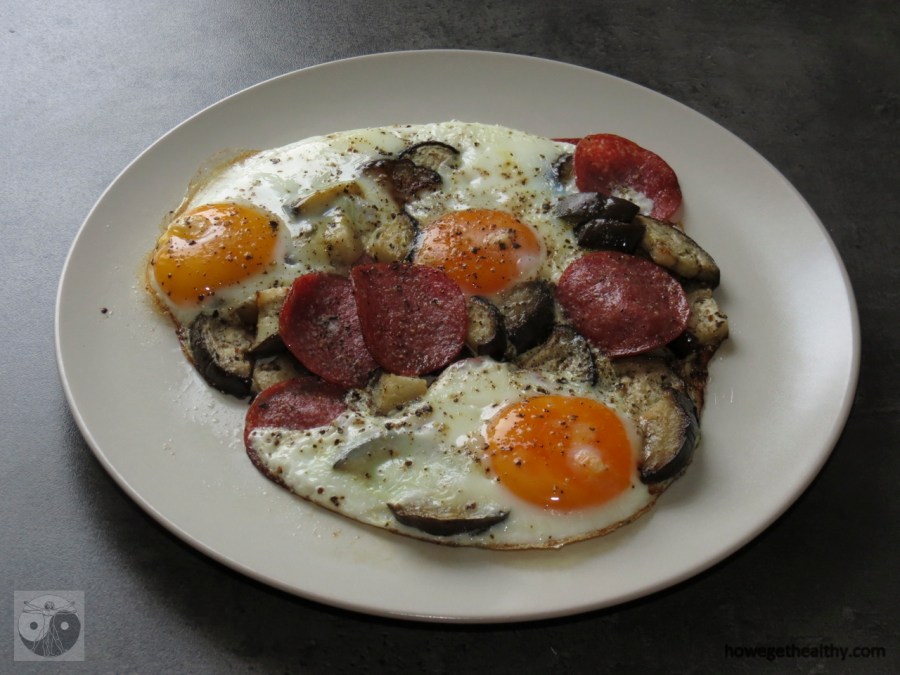 Manchmal muss es einfach schnell gehen und man will dabei noch ein paar Reste verwerten. Für dieses Rezept hatten wir noch ein wenig Aubergine von unserem Auberginenauflauf und Salami von einer Schüttelpizza übrig. Der Einfachheit halber landet alles ohne viel Rühren nacheinander in der Pfanne.