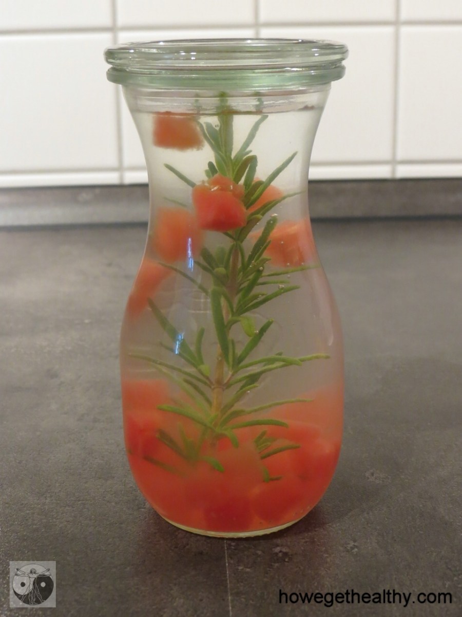 Auch bei der Getränkeauswahl wird es nicht langweilig. Vorgestellt haben wir euch bereits Infused Water – Apfel-Zimt, Infused Water – Mango-Ingwer, Infused Water – Heidelbeere-Zitrone und Infused Water – Zitronengras-Minze. Heute zeigten wir euch eine außergewöhnliche Kombinaiton, die ihr unbedingt ausprobieren solltet.