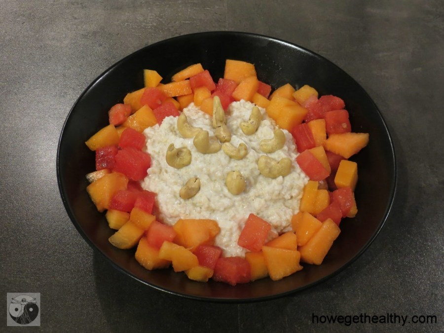 Dieser leckere Porridge mit Quark und Melone ist eine Abwandlung unseres Beerenporridge mit Quark. Die Variante mit Melone ist sehr lecker, wenngleich uns die mit Beeren etwas besser geschmeckt ist.