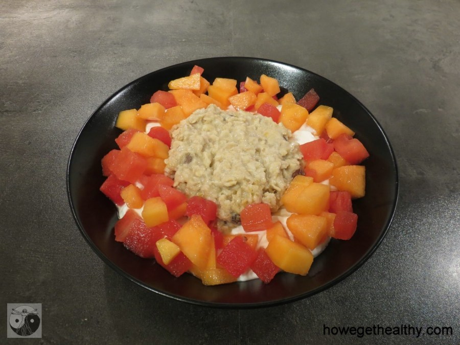 Eine weitere Variante ist der Porridge mit Quark und Melone.