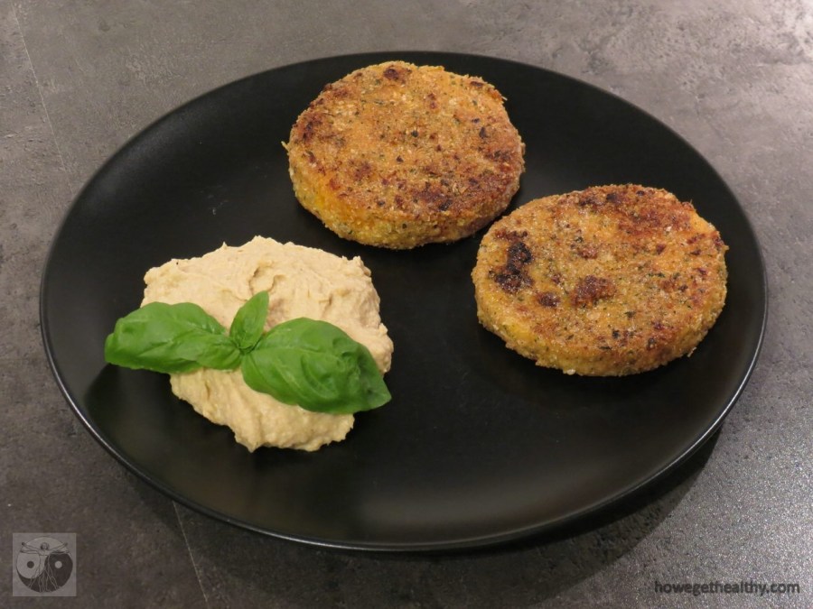 Neben den schon bekannten Kohlrabischnitzeln kommen heute Kürbischnitzel als vegetarische Alternative zu „normalen“ Schnitzeln auf den Tisch. Zum Dippen und geschmacklichen Abrunden gab es dazu noch unseren selbstgemachten Hummus.