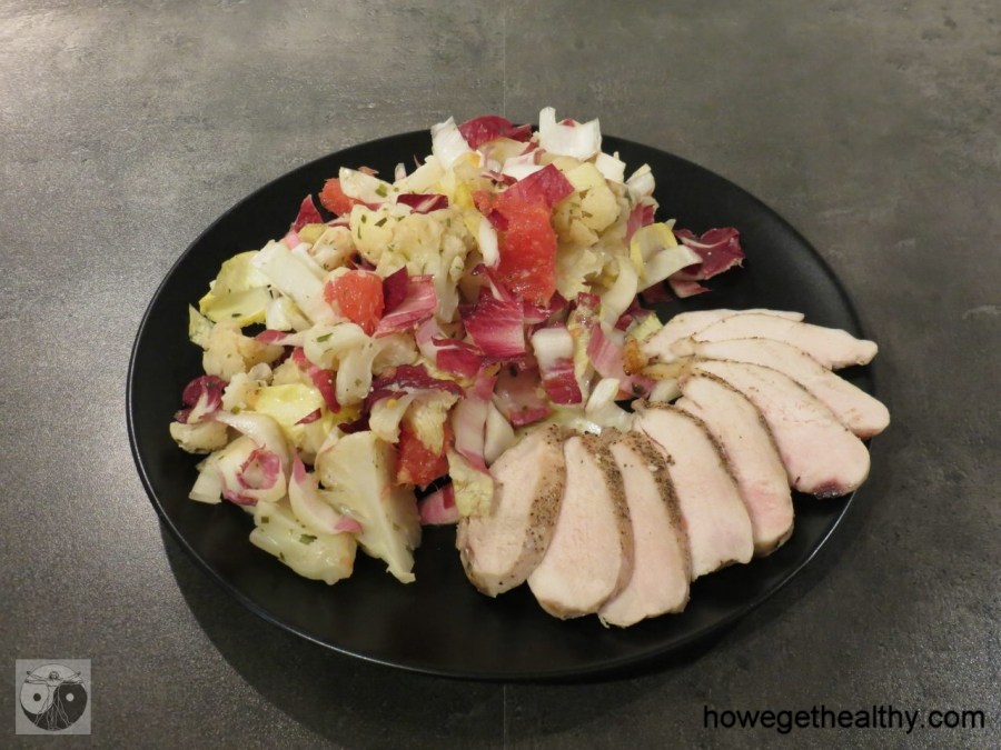 Dieser etwas ausgefallene Salat bringt neben schönen Farben auch die häufig vernachlässigten Geschmacksrichtungen bitter und sauer in einer angenehmen Kombination auf den Tisch.
