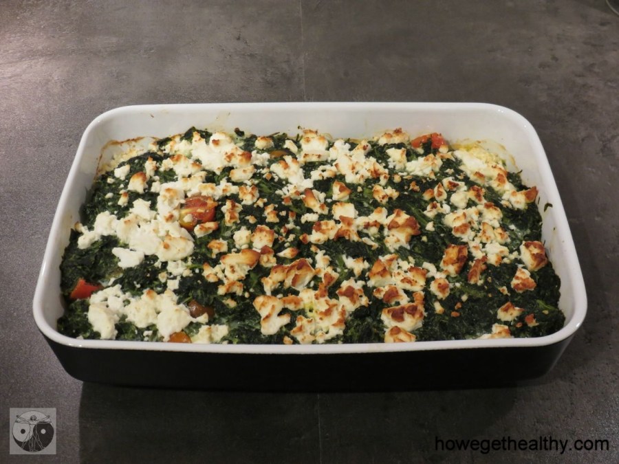 Die Kombination aus Hähnchen und Spinat kennt ihr schon von diesem Repzept: Hähnchenbrust mit Spinatfüllung. Im jetigen Auflauf kommen zusätzlich Feta, Creme fraîche, sowie Tomaten anstatt Paprika zum Einsatz. Durch die Milchprodukte ergibt sich ein etwas höherer Brennwert, aber gerade der Feta ergänzt die Aromen vom Spinat und Hähnchen ganz wunderbar.