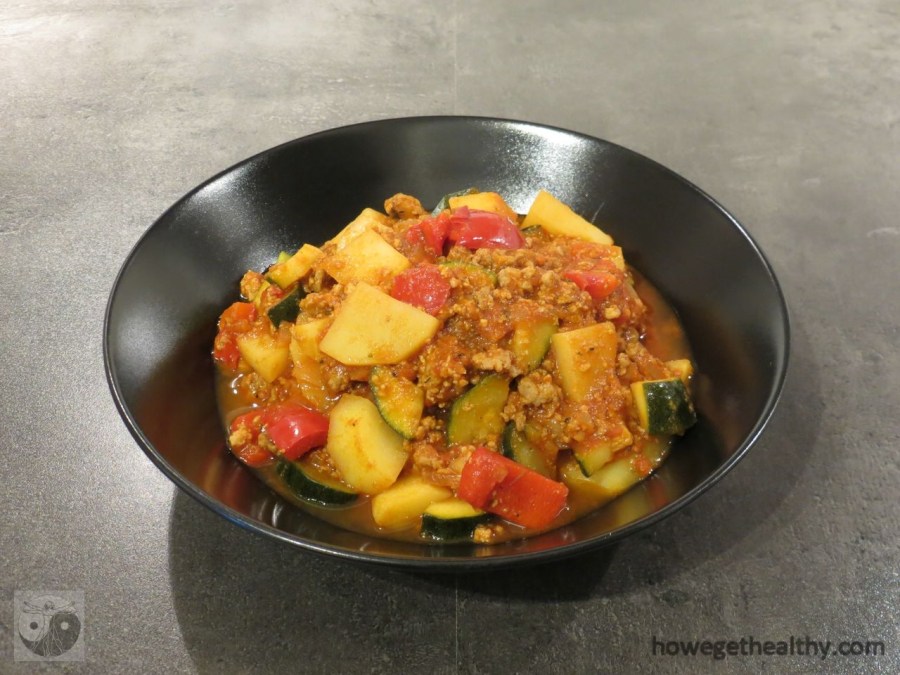 Die Idee stammt aus dem Low Carb Kompendium. Wir haben nach unserem Geschmack die Gemüsemenge erhöht und die Flüssigkeit reduziert, um nicht zu viel (dünne) Soße zu haben. Mit dem Ergebnis waren wir sehr zufrieden 🙂